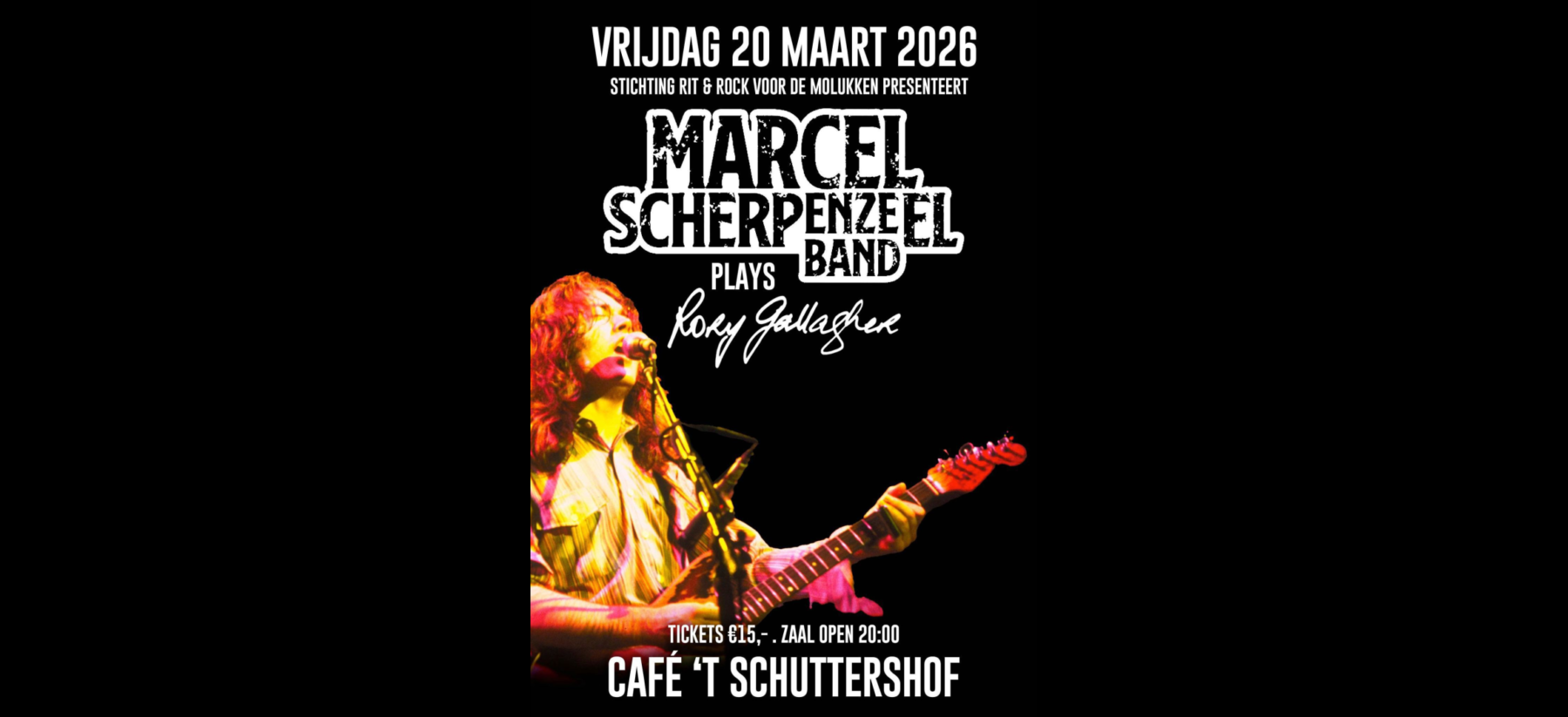 Zet vrijdag 20 maart 2026 alvast in uw agenda, want die avond brengt bluesrocker Marcel Scherpenzeel met zijn band een indrukwekkende ode aan de legendarische Ierse bluesrockgitarist Rory Gallagher in Café ’t Schuttershof in Middelburg.